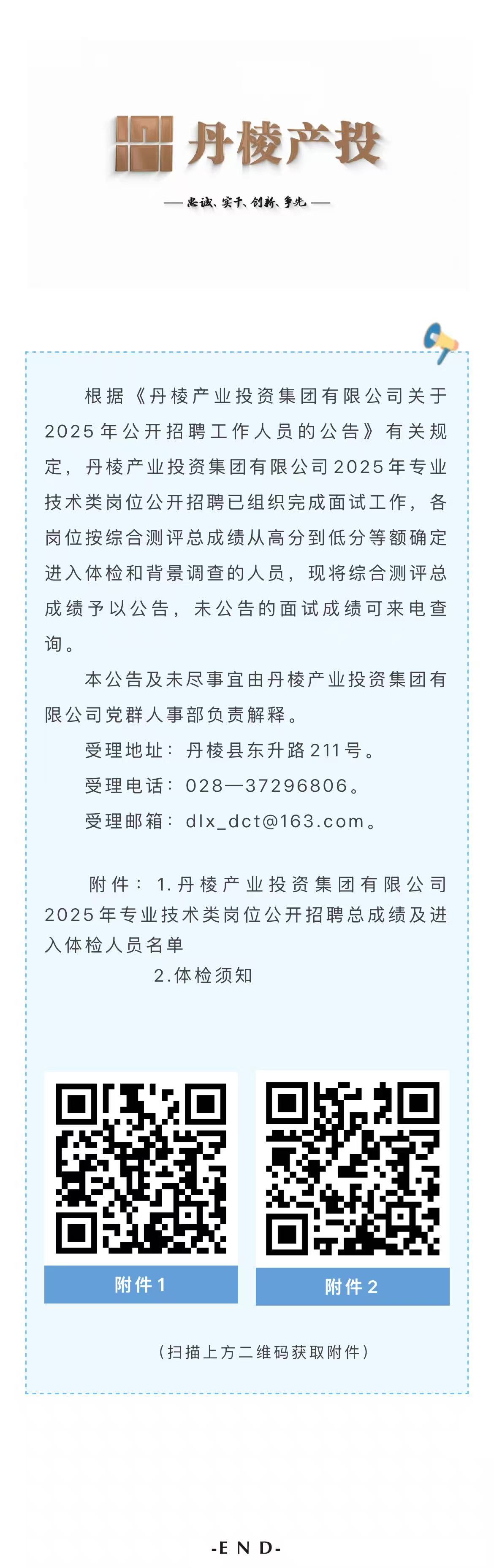 丹棱產(chǎn)業(yè)投資集團(tuán)有限公司關(guān)于2025年專業(yè)技術(shù)類崗位公開招聘總成績(jī)的公告