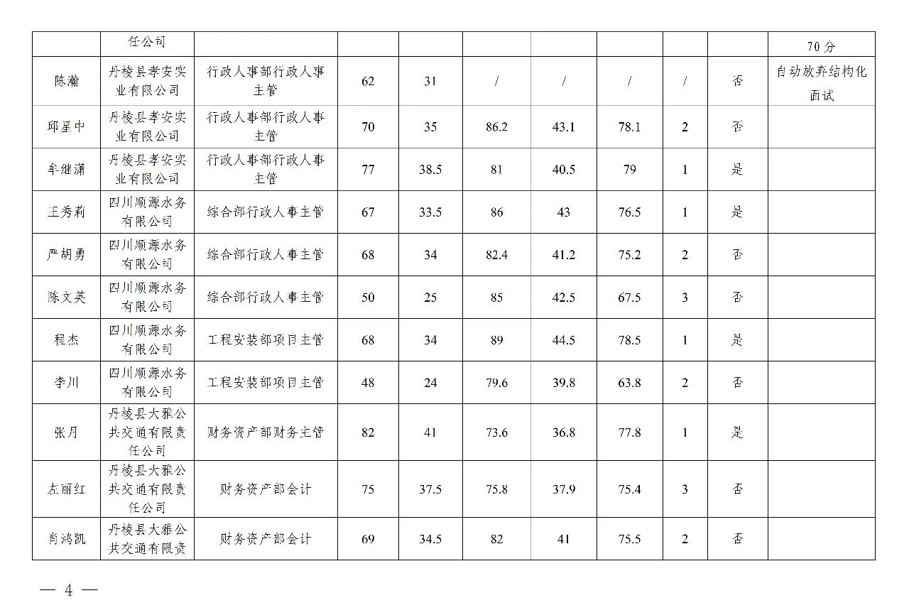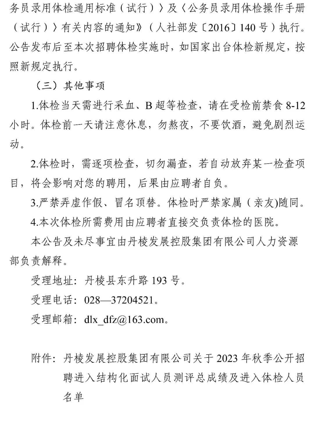 丹棱發(fā)展控股集團有限公司關于2023年秋季公開招聘進入結(jié)構(gòu)化面試人員測評總成績及進入體檢人員的公告