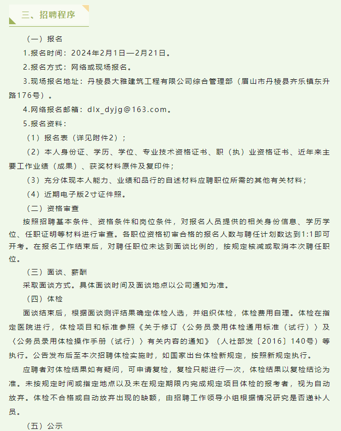 丹棱縣大雅建筑工程有限公司關(guān)于公開招聘6名臨時(shí)性專業(yè)技術(shù)人員的公告