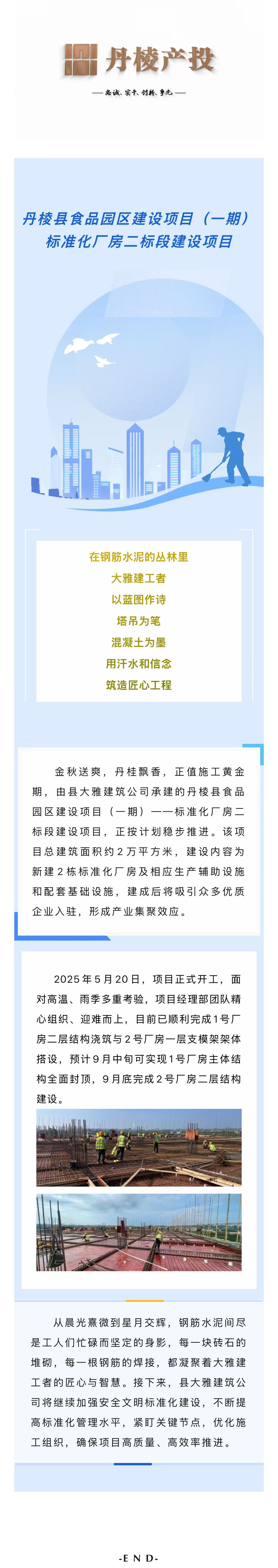 【縣大雅建筑公司】丹棱縣食品園區(qū)建設(shè)項目(一期)——標(biāo)準(zhǔn)化廠房二標(biāo)段建設(shè)項目穩(wěn)步推進(jìn)